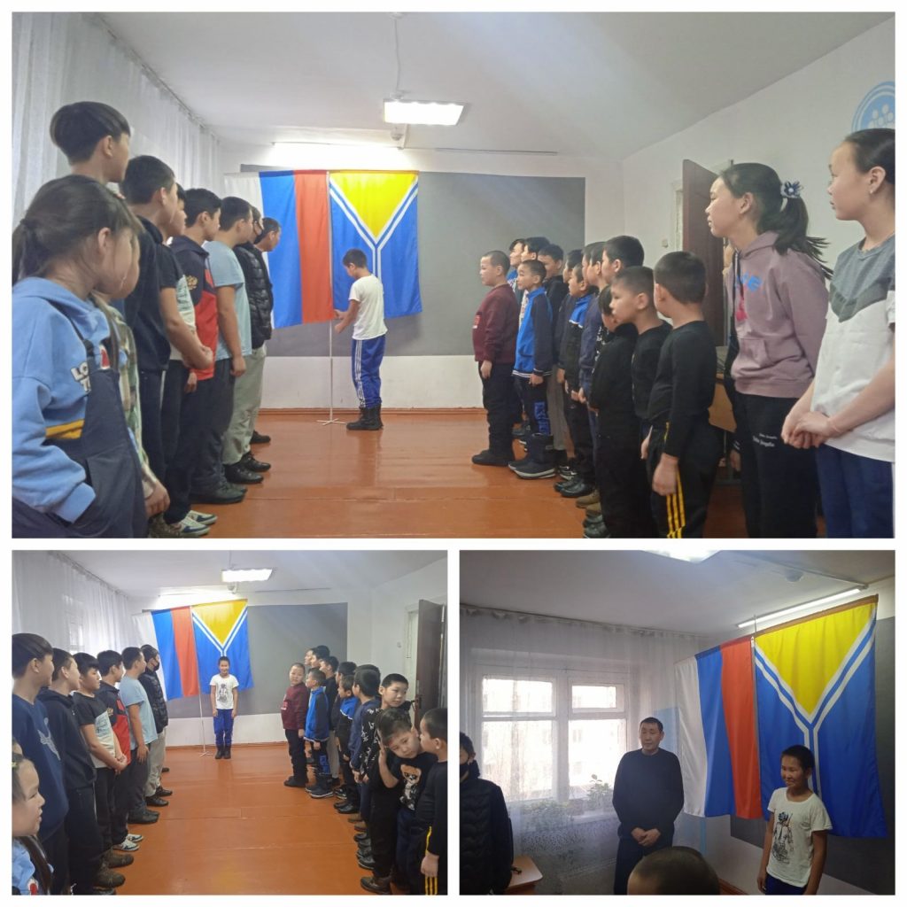 Сегодня педагогами Камаан-оол А.О., Дорже Д.Д. проведена церемония поднятия государственных флагов. Право поднять флаг предоставлено учащемуся объединения «Самбо» Бадыргы Арушу.